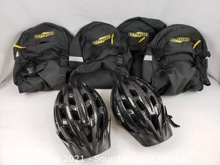 Lot #0176: 2 Bicycle Helmets & 4 Saddle Bags