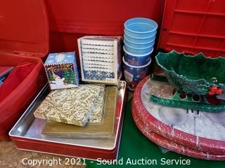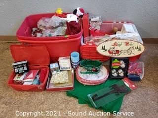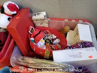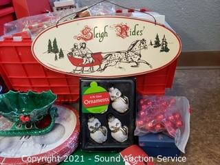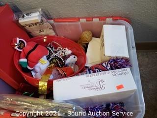 Lot Details: Ornaments, paper plates, cups, various decor & more.