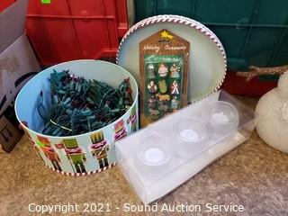 Lot #0392: 2 Totes w/String Lights & Various Christmas Decor