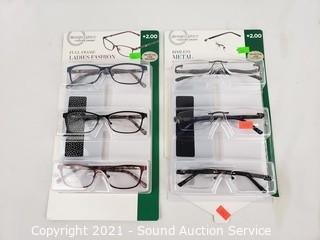 Lot #0383: 6 Design Optics +2.0 Reading Glasses