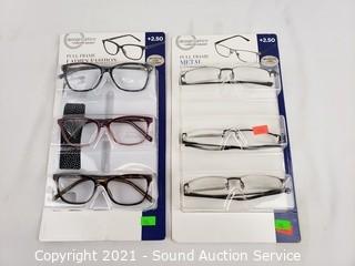 Lot #0385: 6 Design Optics +2.5 Reading Glasses