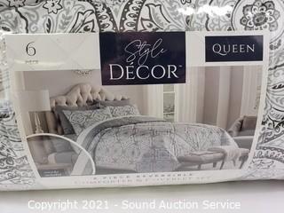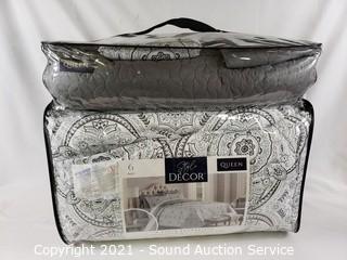 Lot #0324: 6pc Reversible Queen Comforter & Coverlet Set