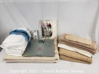 Lot #0125: Bath Towels, Digital Scale, Rug & Shower Curtain
