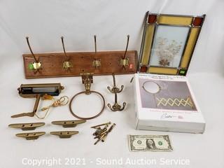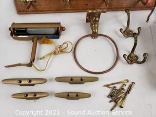 Lot #0203: Brass Cleats, Coat Hooks, Spigot, Window Decor