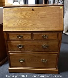 Lot #0011: Oak Finish Drop Front Secretary Desk