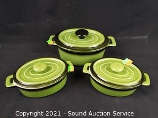 Lot Details: 9" soup tureen, 2.5" x 4" x 5.5" & 3" x 5" x 7" baking dishes.