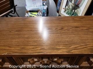 Lot Details: Dovetail joinery. Some scratches & wear to the finish. 30" H x 64" L x 18" W.