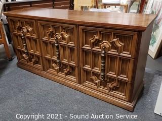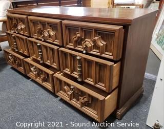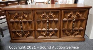 Lot #0015: Vtg. Bassett Aruba Oak 9-Drawer Dresser