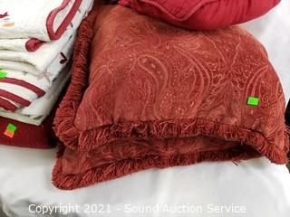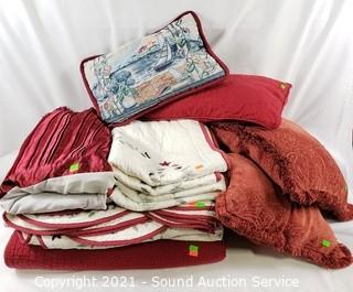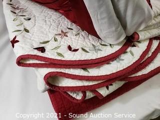 Lot Details: 82" x 80" quilt, 80" x 80" coverlet, (2) 24" x 30" shams, bed skirt, 4 throw pillows.