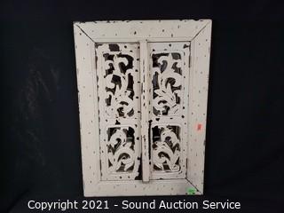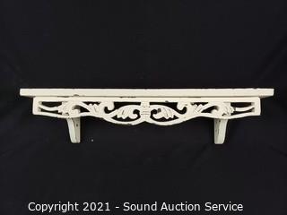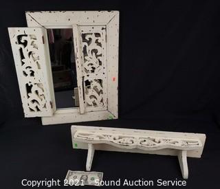 Lot #0202: Ivory Distressed Finish Shelf & Mirror Wall Decor