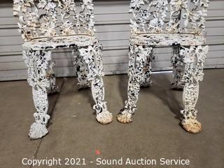 Lot #0016: Ornate Cast Iron Patio Garden Table & Chairs Set