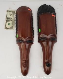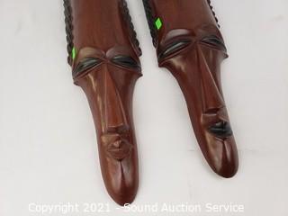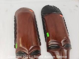 Lot #0235: Pair of Hand Carved Wood Primitive Tribal Mask