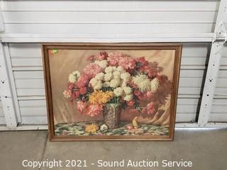 Lot Details: Floral still life original is by JH. Sharf, other do not see a signature. 25" x 31" & 24" x 30".