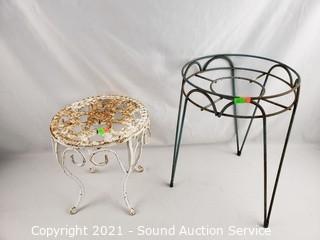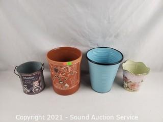 Lot Details: pots approx. 5" x 5" to 8" x 7", stands 11" x 10" to 15" x 10", birdhouse 16" x 7.5" x 7.5".