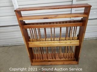 Lot Details: Holds plates, bowls, cups. 44" H x 36" W x 9.5" D.