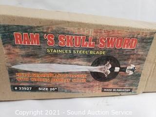 Lot #0168: Ram Skull Fantasy Sword w/Display