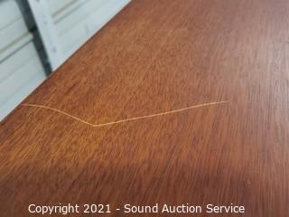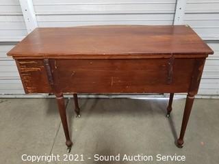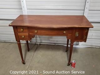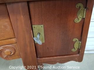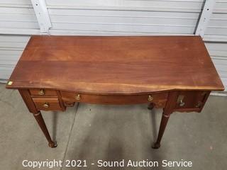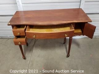 Lot #0033: Vtg. Mahogany 3-Drawer Desk w/Locking Cubby