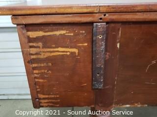 Lot Details: Comes with key. Steel casters, dovetail joinery. Some minor wear to the finish. Great piece. 32" H x 43.5" W x 19.5" D.