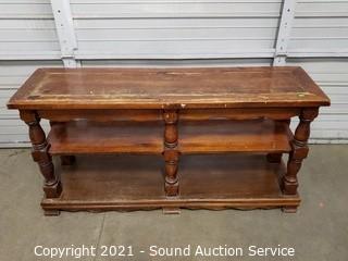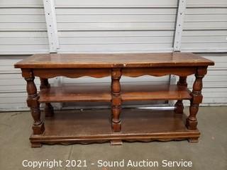 Lot #0034: Vtg. Solid Wood 3-Tier Console