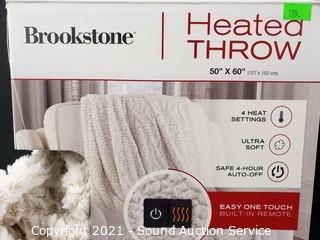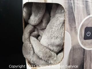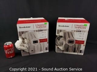 Lot #0199: 2 Brookstone Ivory/Gray Heated Plush Throws