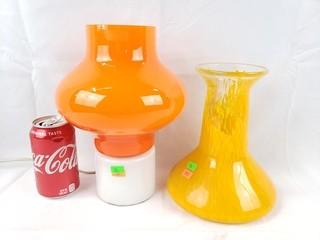 Lot #0138: Art Glass Beaker Vase & Table Lamp