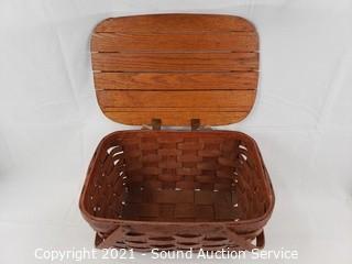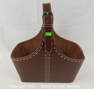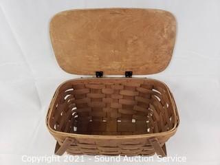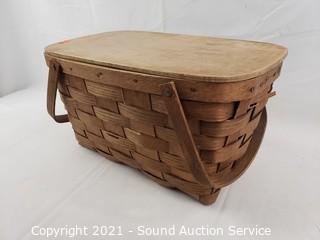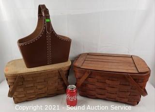 Lot #0211: Faux Leather Basket & 2 Wove Picnic Baskets w/Lids