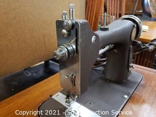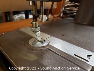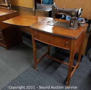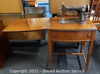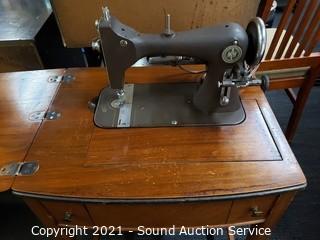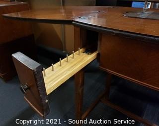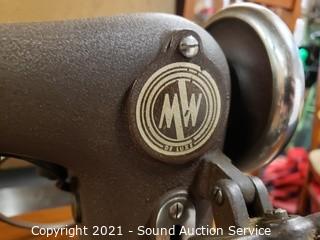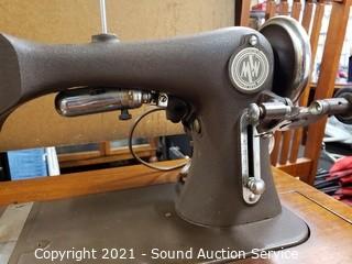 Lot #0032: Vtg. MW De Luxe Sewing Machine w/Cabinet