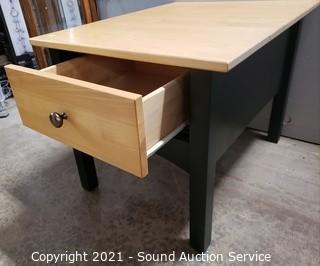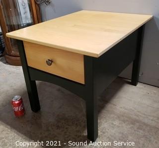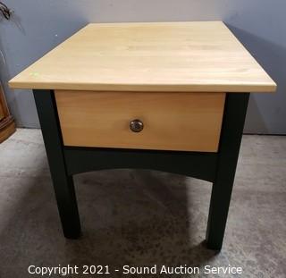 Lot #0064: Country Cottage Maple & Green Single Drawer Table
