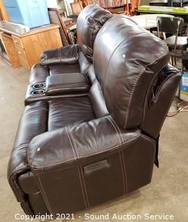 Lot #0006: Nice Leather Power Dual Recline Sofa