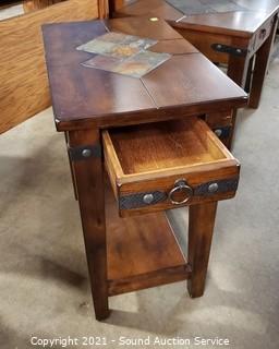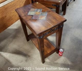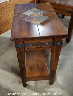 Lot #0011: Nice Stone Tile Top Single Drawer Side Table