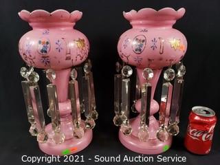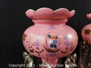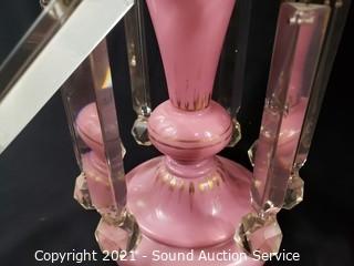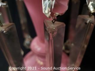 Lot #0097: Set of Unique Vtg. Crystal Prism Pink Glass Vases
