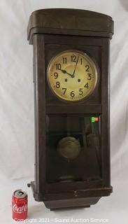 Lot #0106: Vtg. Wood Pendulum Wall Clock w/Key - Works