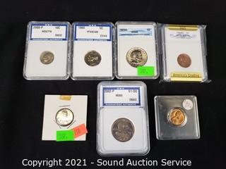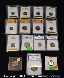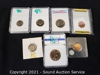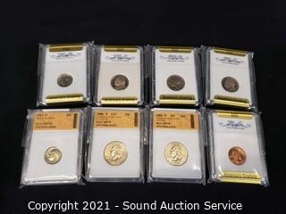 Lot Details: 1943 Steel War Cent, 1954 Lincoln Cent, 1984 & 1984-D MS70 Lincoln Cents, 1960 PF69CAM, 1978-S PR70CAM, 1981-D MS70, 1984-S PR70CAM Jefferson Nickels, 1981-P MS70, 2000-P MS67FB, 2003-D MS70 Roosevelt Dimes, 2006-P MS70 Nevada & Colorado Quarters, 2002-P MS65 Sacagawea Dollar, 1979-S MS68 Susan B. Anthony Dollar.