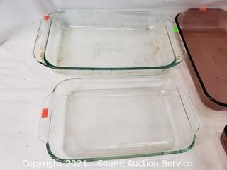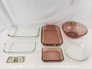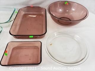 Lot #0398: 6ct Clear & Purple Pyrex Cookware