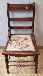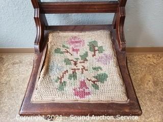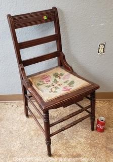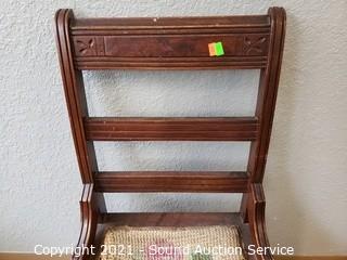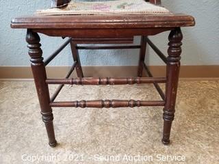 Lot Details: 36" H x 18" W x 18" to seat. The under support of the seat is torn. Various wear to the finish.