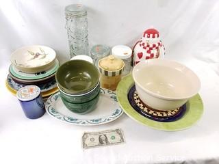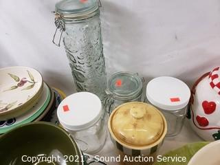 Lot #0256: Assorted Dishes, Canisters, Cookie Jar