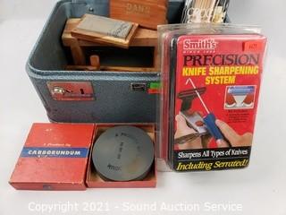 Lot #0118: Case w/Knife Sharpening Honing Stones & Rods
