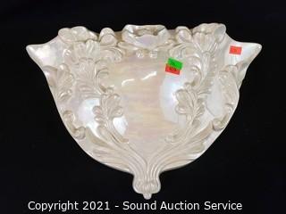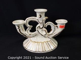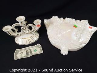 Lot #0396: Ceramic Opalescent Candelabra & Wall Pocket