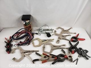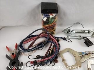 Lot #0243: Clamps, Bungee Cords, Banding Tool