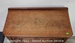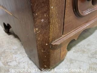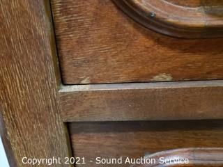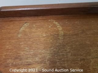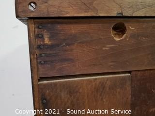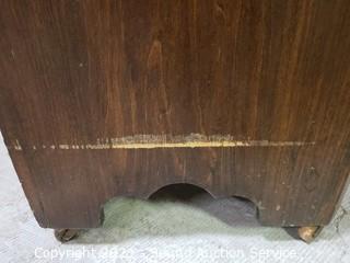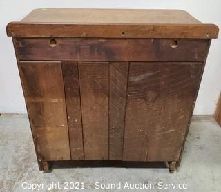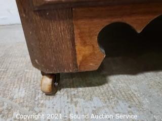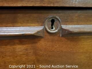 Lot Details: Skeleton key locks, no keys, wood casters In great condition. 30" H x 31" W x 15.5" D. In some minor wear to the top otherwise in great condition.