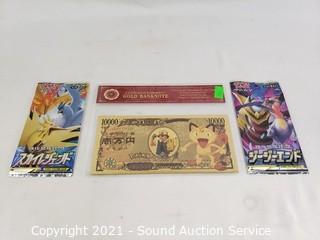 Lot #0206: 2 Japanese Pokemon Sealed Packs & Gold Banknote
