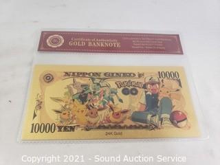 Lot Details: Banknote is 99.9% 24k gold with COA. 2 Japanese Tag Team GX sealed packs.