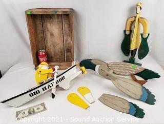 Lot #0271: 3 Wood Animated Pinwheel Figures & Pepsi Crate