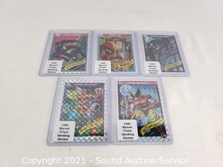 Lot #0210: (5) 1990 Marvel Prism Vending Stickers