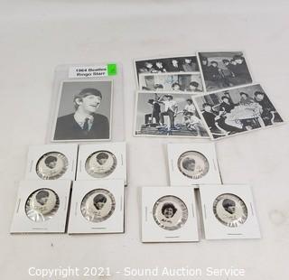 Lot #0204: 7 Vtg. Monkees Buttons & 6 Beatles Cards