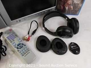 Lot Details: Comes with player with a 13" screen, headphone, speakers, remote, manual & travel case.