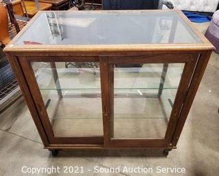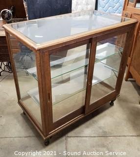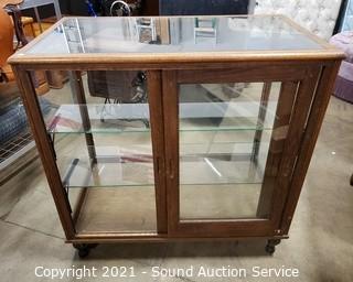 Lot #0028: Vintage Oak & Glass Curio Display Cabinet