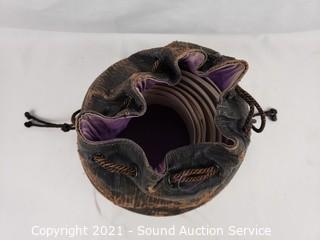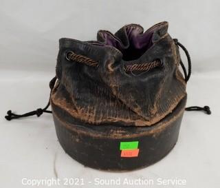 Lot #0252: Vtg. Leather Pouch Full of Shirt Cuffs? Collars?