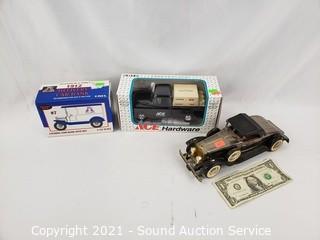 Lot #0119: 2 Die Cast Vehicle Coin Banks & Radio
