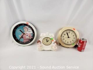 Lot Details: Porcelain Elec. Self Starting Clock, Princess Seth Thomas Elec. Clock, Quartz I Love Lucy Clock. All work.